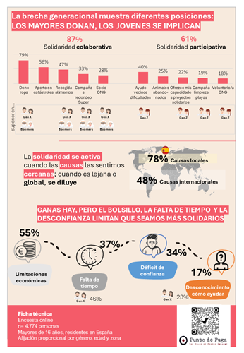 - los más jóvenes (especialmente la Gen Z) se decantan por implicarse y participar - una solidaridad más participativa. No es menos compromiso, es otra manera de entenderlo.